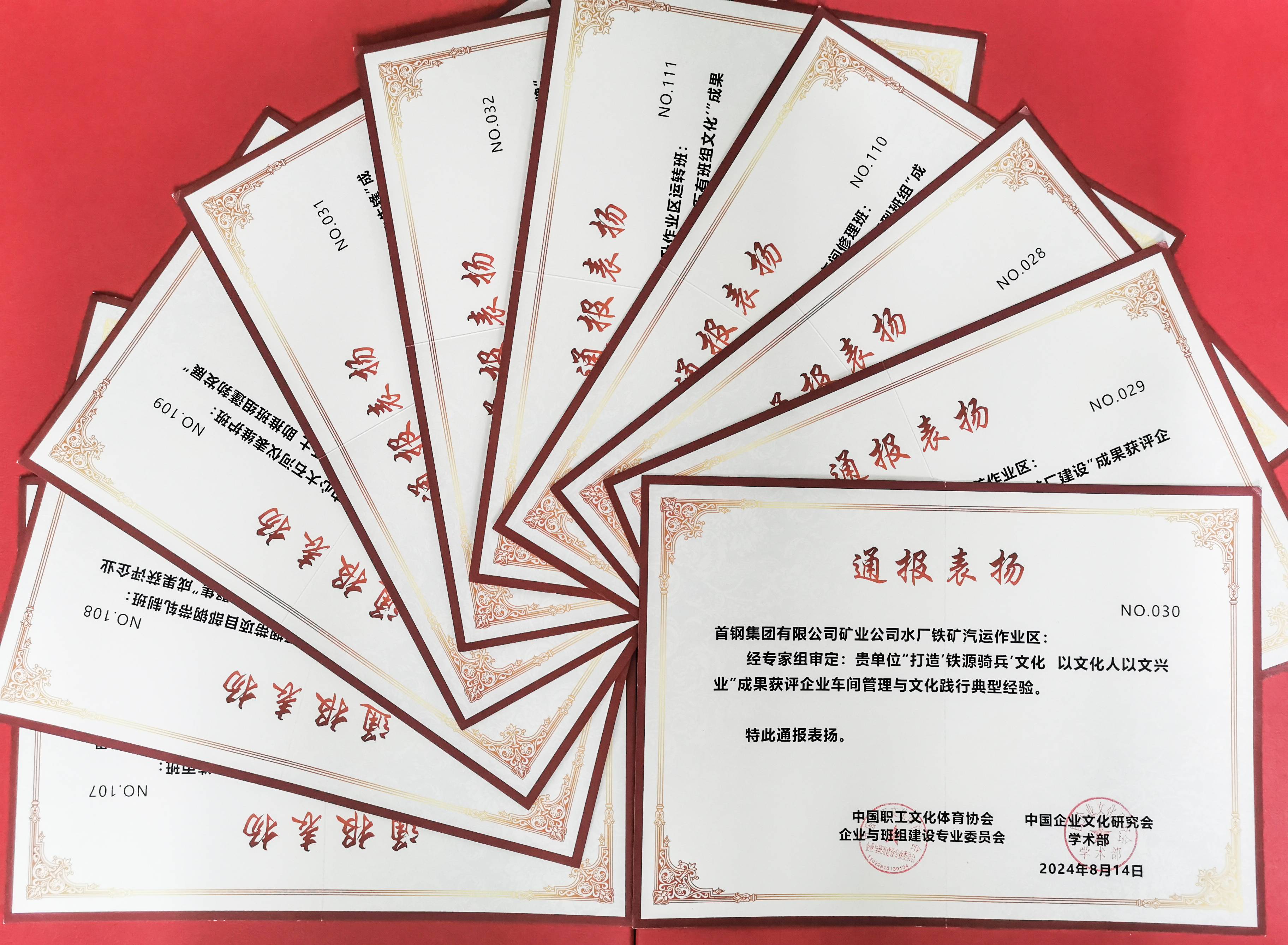 水厂铁矿汽运作业区“打造‘铁源骑兵’文化 以文化人以文兴业”、杏山铁矿开拓作业区“‘五抓五重五提升’当好地采开路先锋”、马城矿业选矿作业区“‘选矿精神’助推选矿厂建设”、运输部迁钢段“党建引领,文化铸魂打造运输服务品牌”、矿建公司建安工程事业部“践行‘学做创’以矿山鲁班打造‘中国结’”等5项成果被评为企业车间管理与文化践行典型经验。