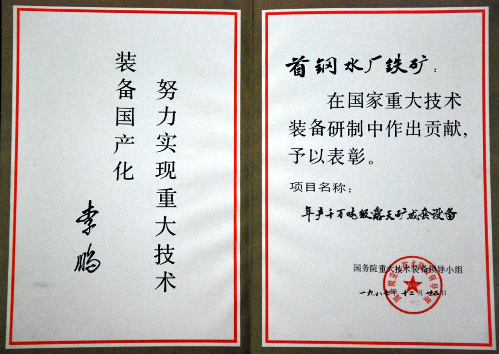 首钢水厂铁矿位于河北省迁安市、迁西县交界处,始建于1969年, 是股份公司的重要原料基地,为国内特大型露天铁矿之一。拥有采选两个系统,设计能力为年处理铁矿石1800万吨。水厂铁矿采场设计开采最高水平为+310米,最低开采水平为-350米,年采出矿石1100万吨左右。建矿以来,截至2016年底累计完成采剥总量17.36亿吨,采出矿石3.77亿吨,生产精矿粉1.16亿吨,为首钢发展做出了重大贡献。