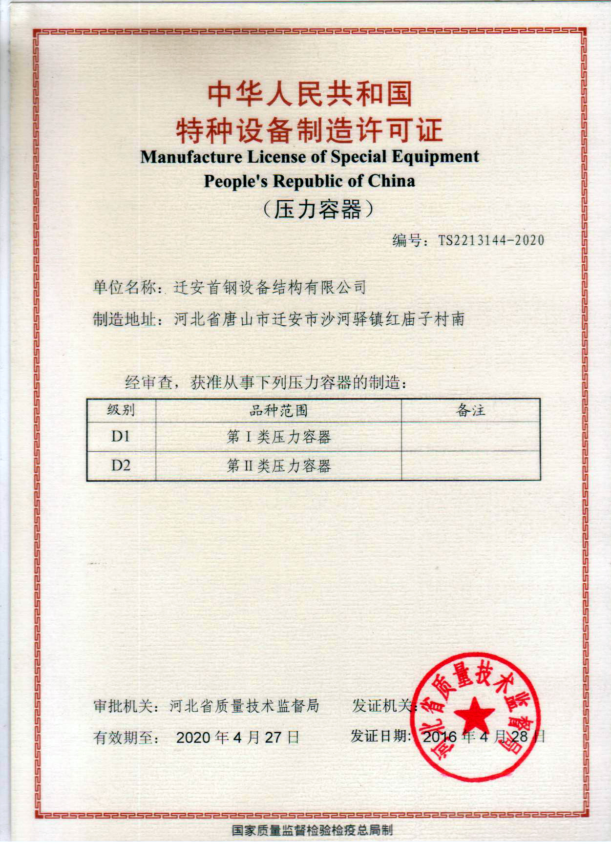 迁安首钢设备结构有限公司