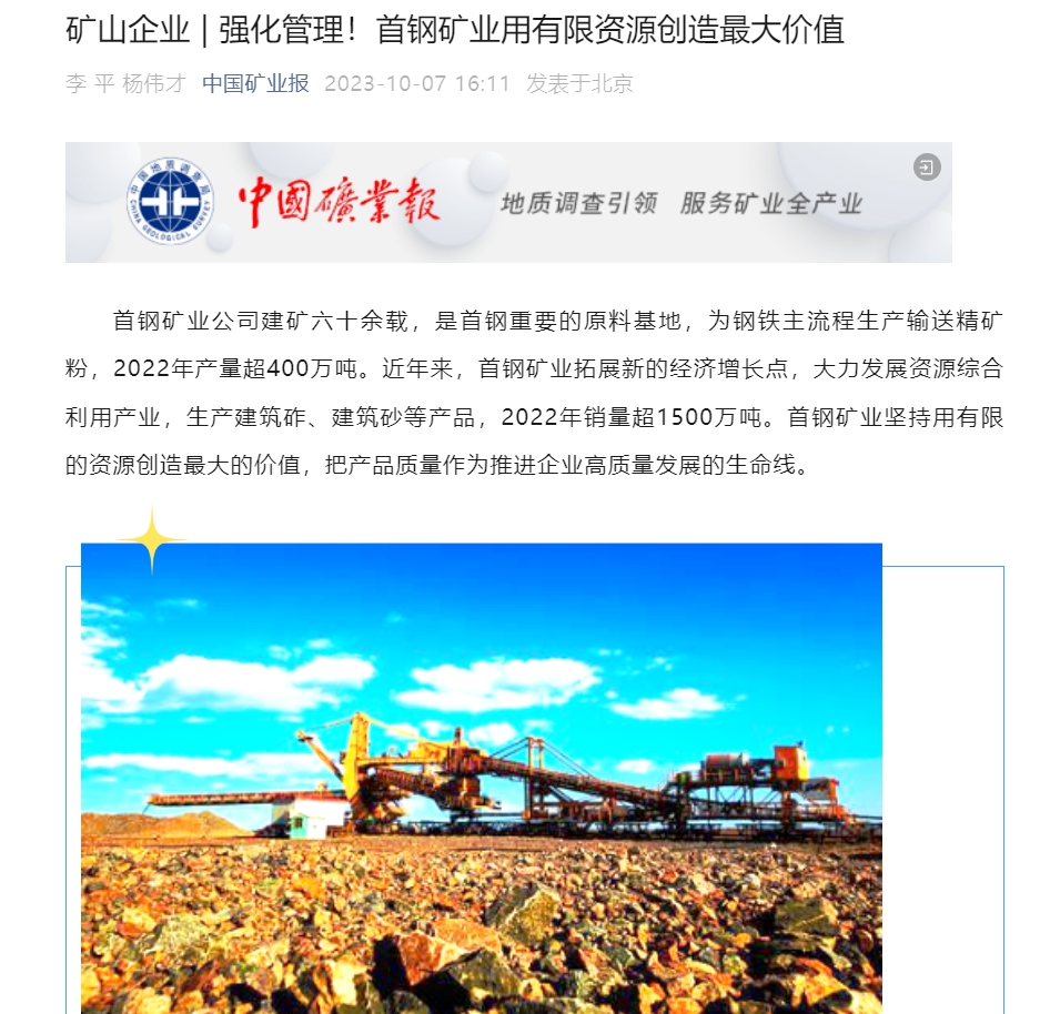 当源源不断的精矿粉从皮带通廊流淌而出,当一车车建材产品随着火车运往远方,首矿人正在用智慧擦亮质量品牌,在矿山深处点石成金,矢志不渝地推进企业高质量发展。