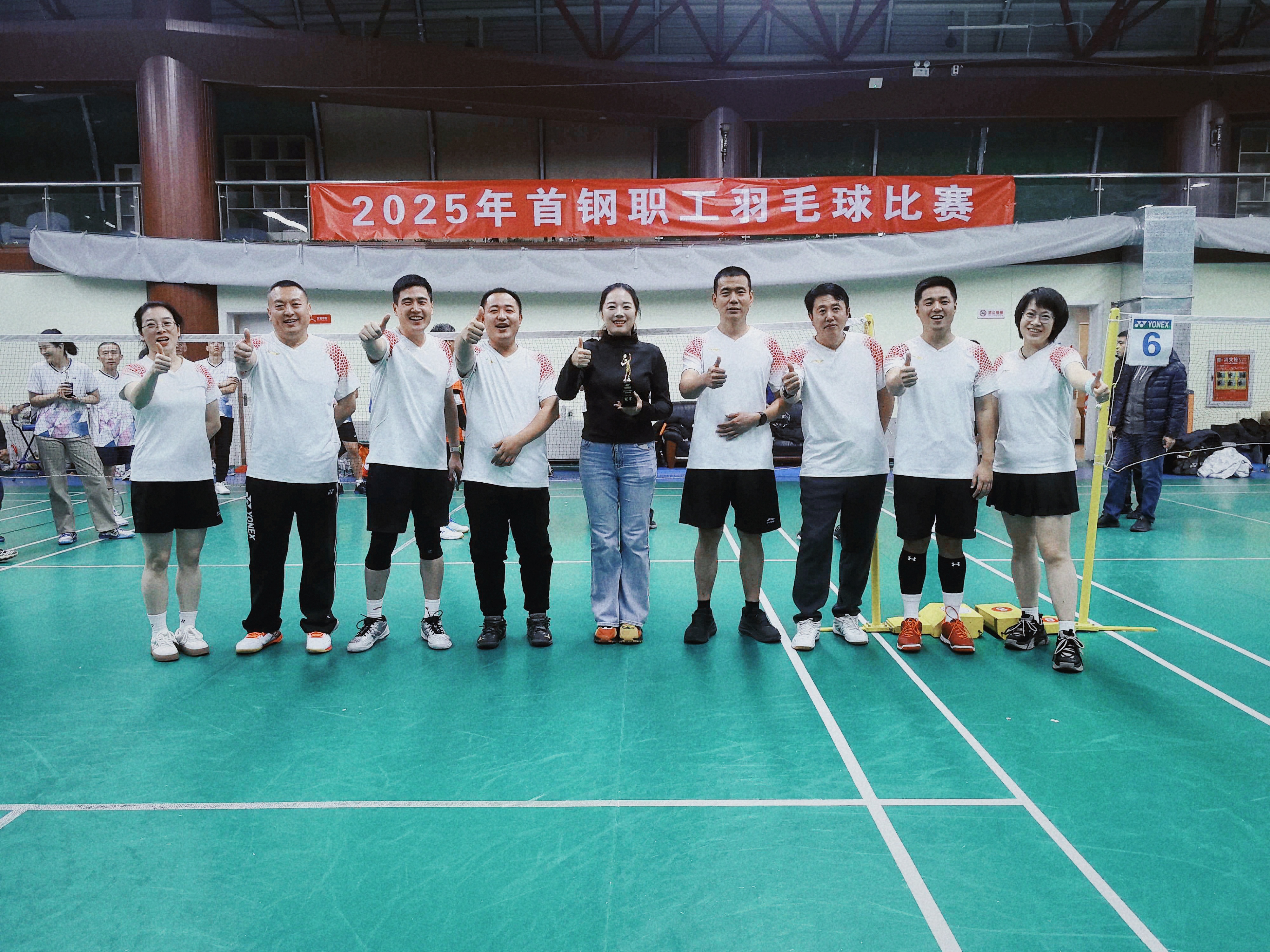 近日,2025年首钢职工羽毛球决赛圆满收官,矿业公司代表队在女双、男双及“100岁+男双”项目中稳扎稳打、全线告捷,最终凭借优异战绩,力压群雄,摘得团体冠军。