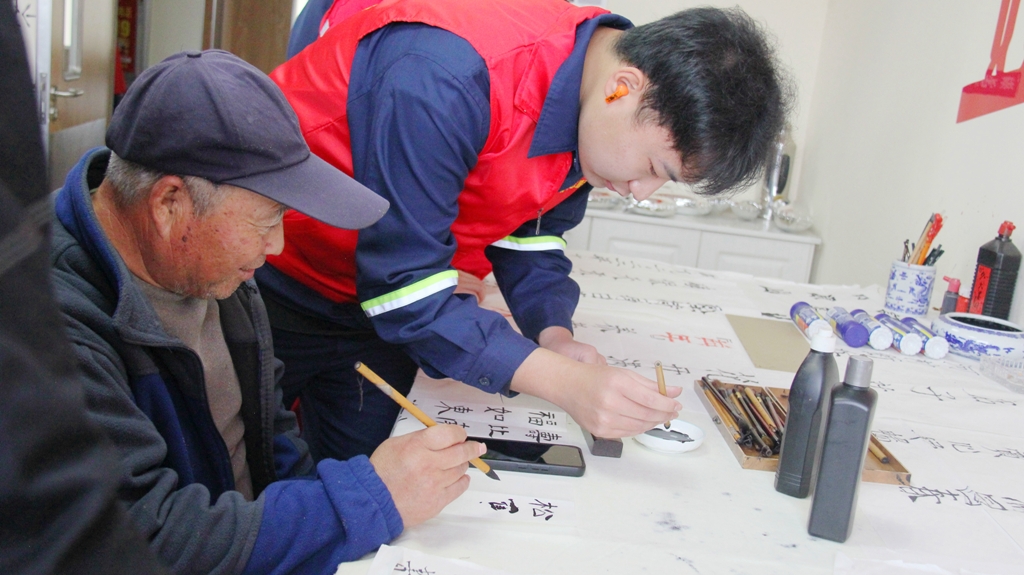 这是近日首钢矿业公司 “志愿绘夕阳 温馨伴老行”志愿服务活动现场的一幕。